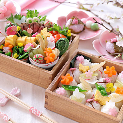 In Japan, there is a tradition of bringing homemade bento for lunch at kindergarten and at schools without cafeteria meals, as well as for events such as field trips and sports days. There is also a long history of taking bento on outings—symbolized by hanami (cherry-blossom viewing) bento. With this food culture as our backdrop, let’s cook, pack, and eat together to fully enjoy the charm of bento.